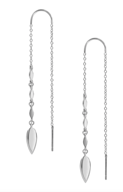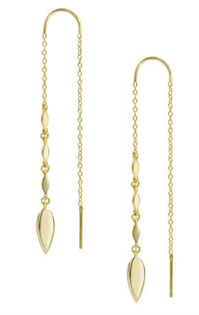 Elegant yet fashion-forward, the Natalie Wood Designs Grace Ear Threaders feature gold metal teardrops and delicate chain. It's no wonder why these are one of our most loved styles. Pro Tip: The threader style can seem intimidating at first, but they're extremely easy to insert and so light you won't even feel them in your ears! Just thread the post-like part through the ear and the chain will follow.