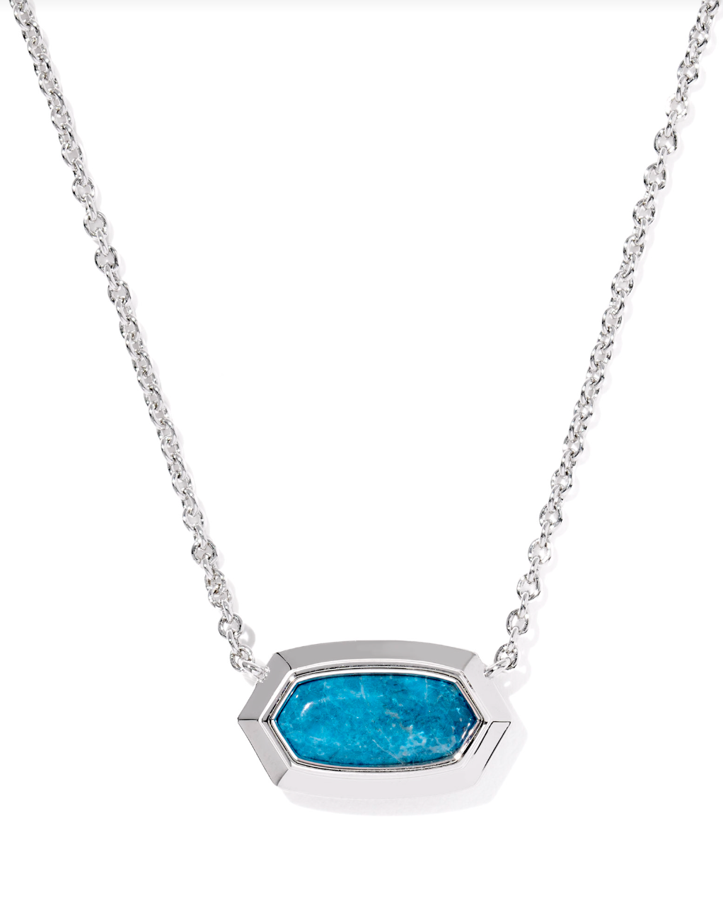 Elisa Bezel Silver Short Pendant Necklace in Variegated Indigo Magnesite - Kendra Scott