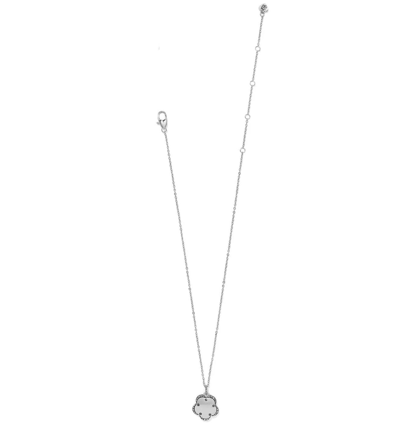 Gaia means “of the earth” and this necklace with a brushed silver flower will add an earth-loving accent to whatever you wear.