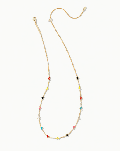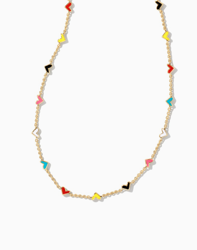 “I don’t know if there’s any symbol more iconic than the heart. Despite being more delicate, they’re what make this necklace stand out amongst your other layers.” - Kendra Hand-painted hearts dot the Haven Gold Heart Strand Necklace in Multi Mix. Playful with plenty of charm, add to your collection of colorful favorites.