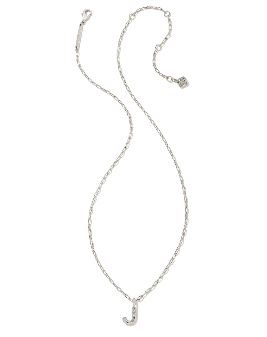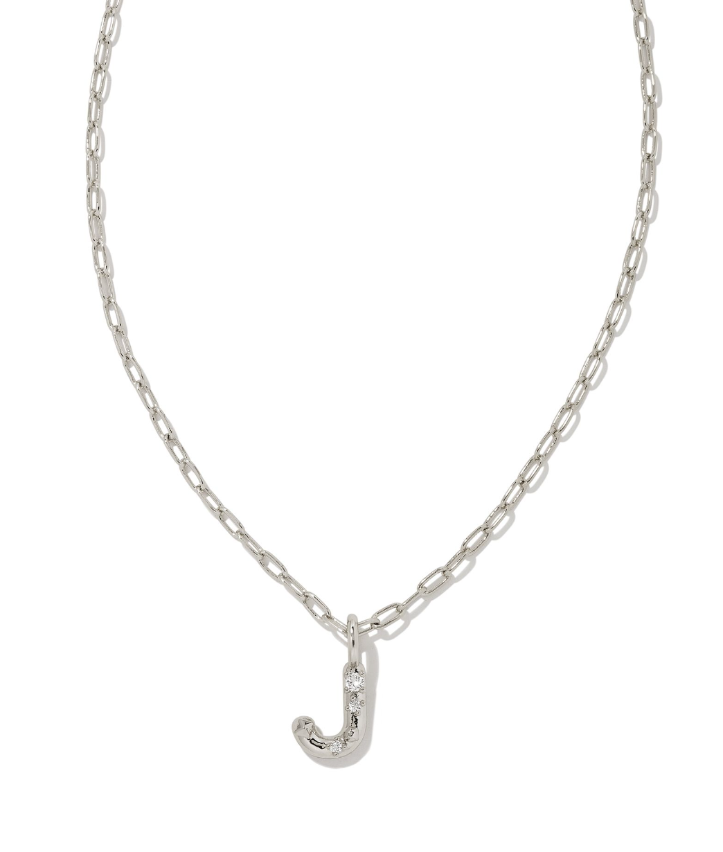 Letter J Silver Short Pendant Necklace in White Crystal - Kendra Scott