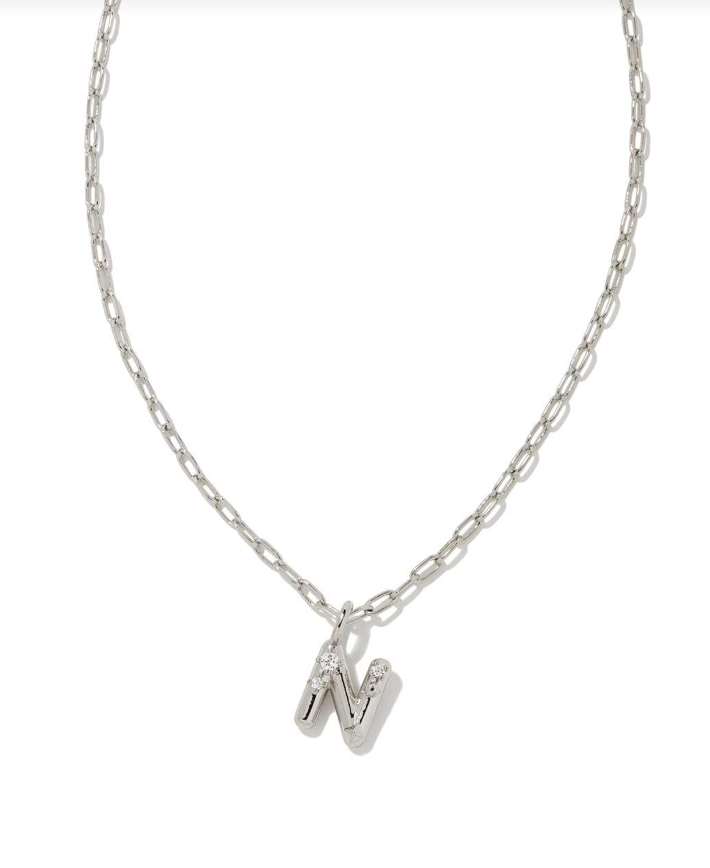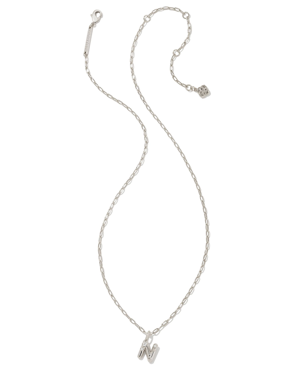 Letter N Silver Short Pendant Necklace in White Crystal - Kendra Scott