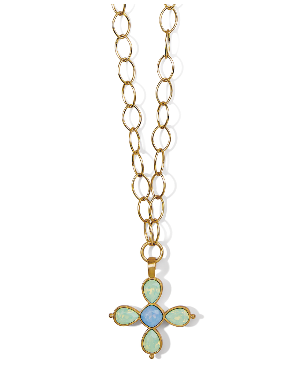 Pear shaped crystal "opals" adorn this pendant named for the golden details in the Palace of Versailles. The pendant reverses to all gold and detaches so you can wear it with other Versailles chains.