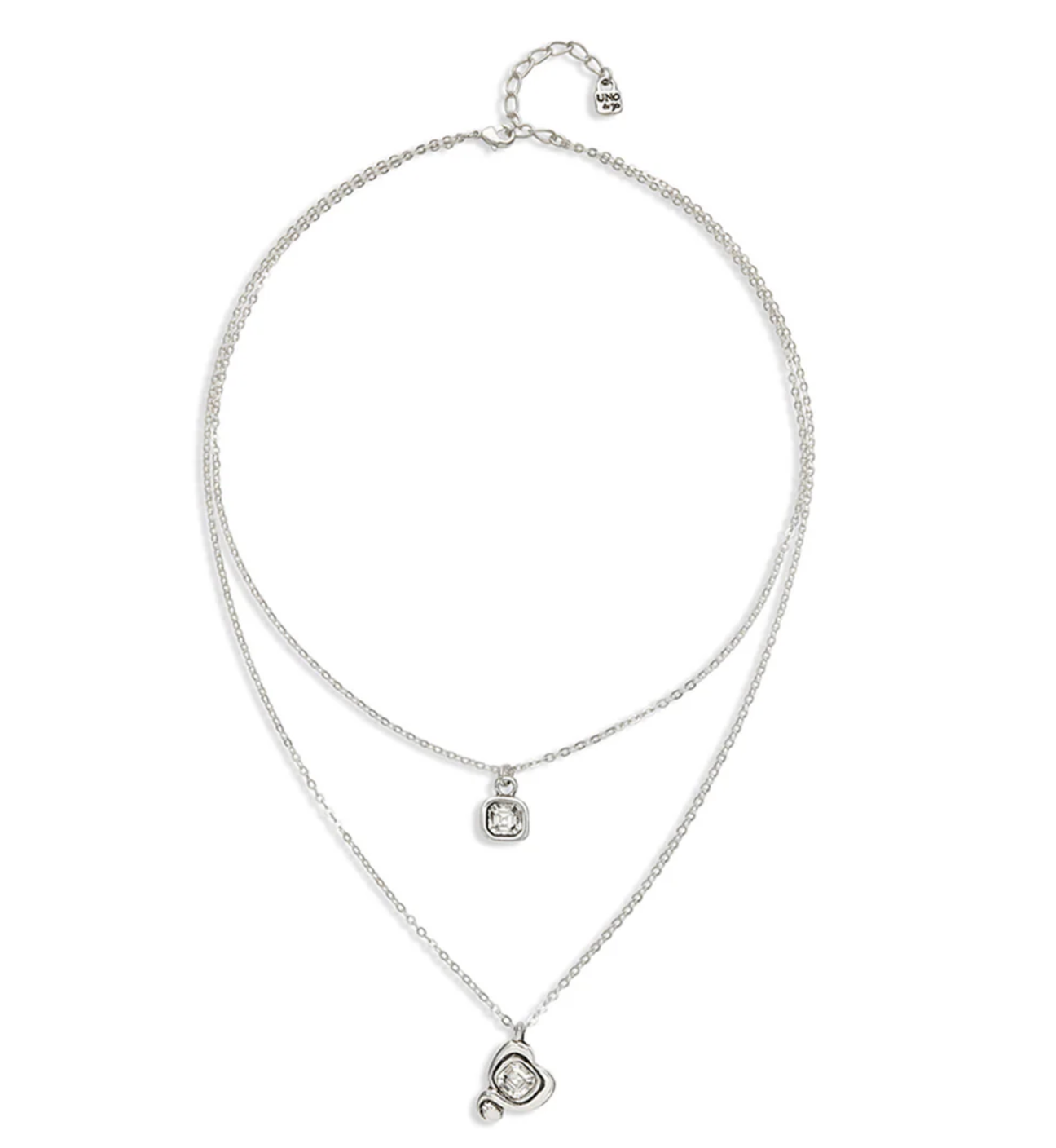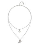 Silver Double Chain Heart Necklace W/ Clear Crystal - UNO de 50
