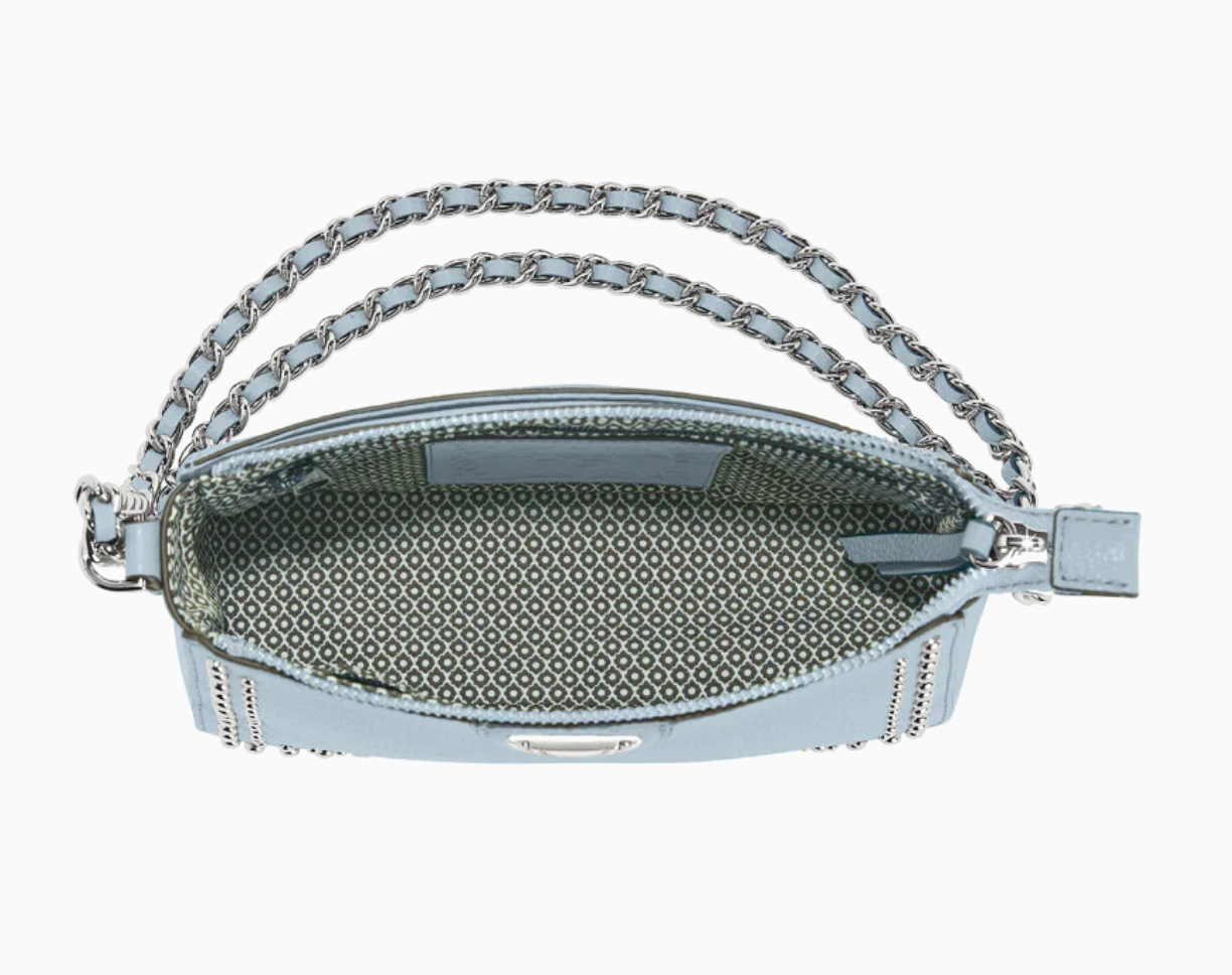With its perfect small size this bag in beautiful pebbled leather is polished enough to wear to any occasion whether out to lunch or an evening out. The design is a twist on the 90s classic baguette, with a top zipper, an interior roomy enough to fit all your essentials, a back pocket to fit your phone and is equipped with an adjustable chain strap to wear short under the arm or crossbody.