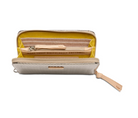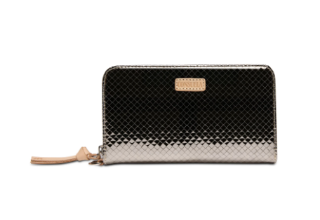 Function and versatility in the palm of your hand. Our new Essential Wallet is a streamlined, large capacity wallet with tons of room for cards, cash, and receipts — plus a zippered center compartment for coins and keepsakes. We added a D-ring so you can easily clip it to any Consuela wristlet strap or anchor onto an inside lanyard for added security.