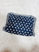 XL Navy & White Quilted Ruffle Cosmetic Bag