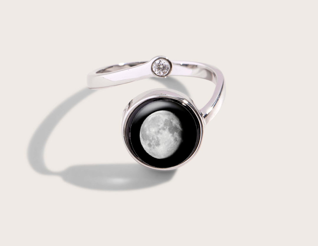 A classic, beautiful and unique adjustable ring to brilliantly display your special date. Let your moment shine with Moonglow and this brilliant, Cosmic Spiral Ring In Rhodium!