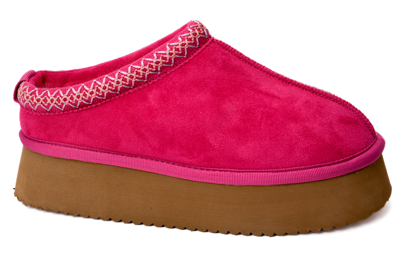 Add a trendy twist to your wardrobe with Corkys Fuchsia Faux Suede Platform Slippers! These viral slippers are not only comfy for lounging, but they are also perfect for running errands! Say goodbye to boring slippers and hello to these stylish and versatile slip-ons!