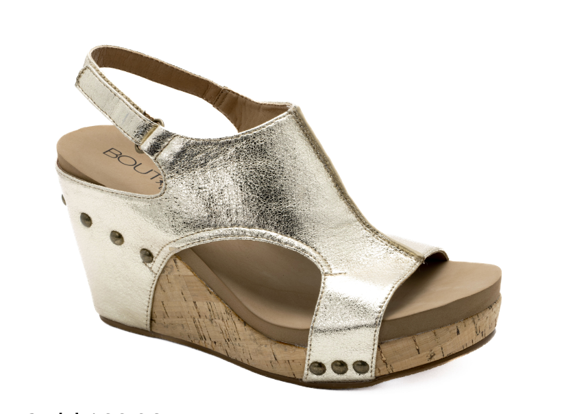 Step into the holiday season with Corkys Gold Tiffanee Wedges! These chic and comfy shoes are perfect for any occasion with their versatile style and sparkling design! Don't miss out on adding some shine to your wardrobe!