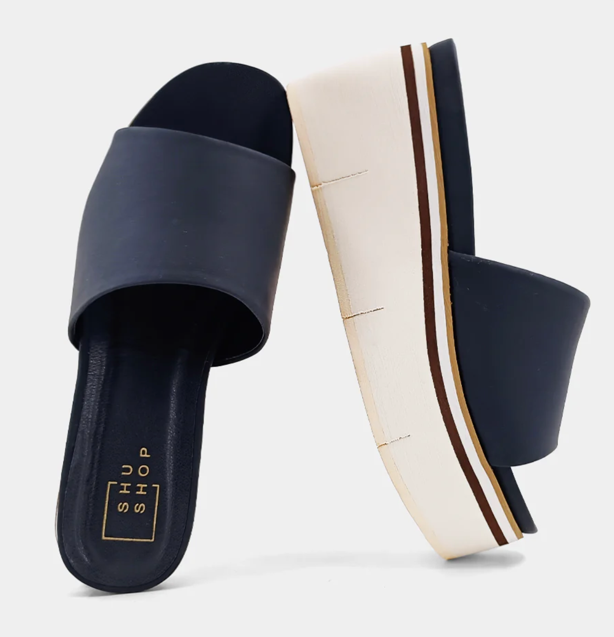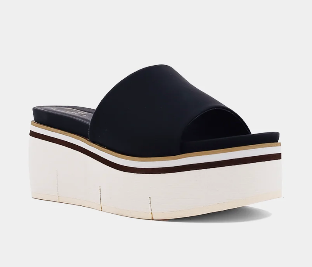JADE is a chic shoe made of soft faux leather with a unique design. The wide strap upper and color-blocked platform soles add a stylish touch. Pair it with any outfit, from casual to elegant, to make a bold fashion statement.
