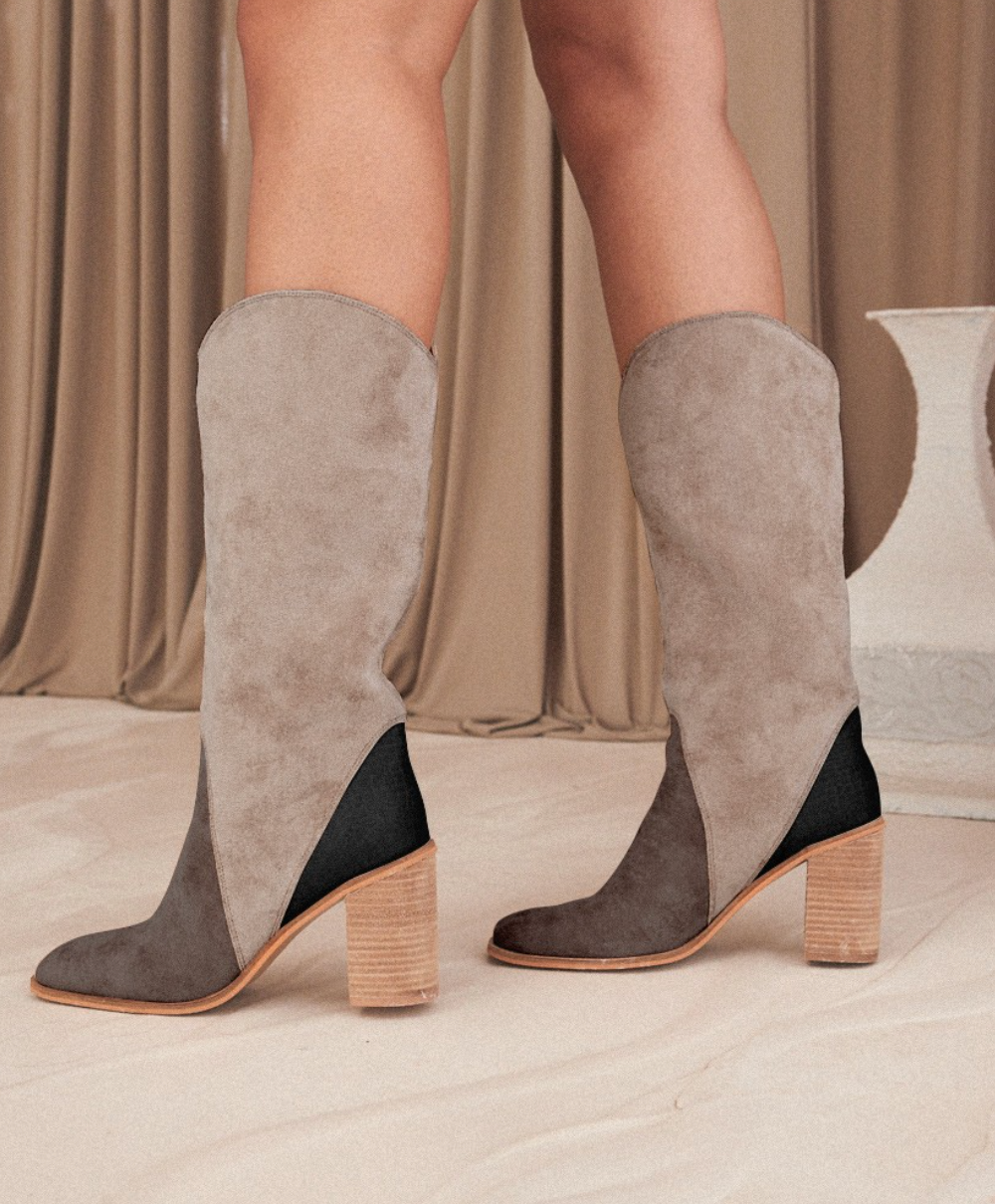 Step into style with our eye-catching KRISTIN boots, the stunning return of our best-seller KENDALL in a tall boots version! These boots feature a unique three-tone patchwork design, with different colors beautifully placed on the instep, shaft, and heel counter. The modernized square toe and curved collar add a touch of sophistication to your look.