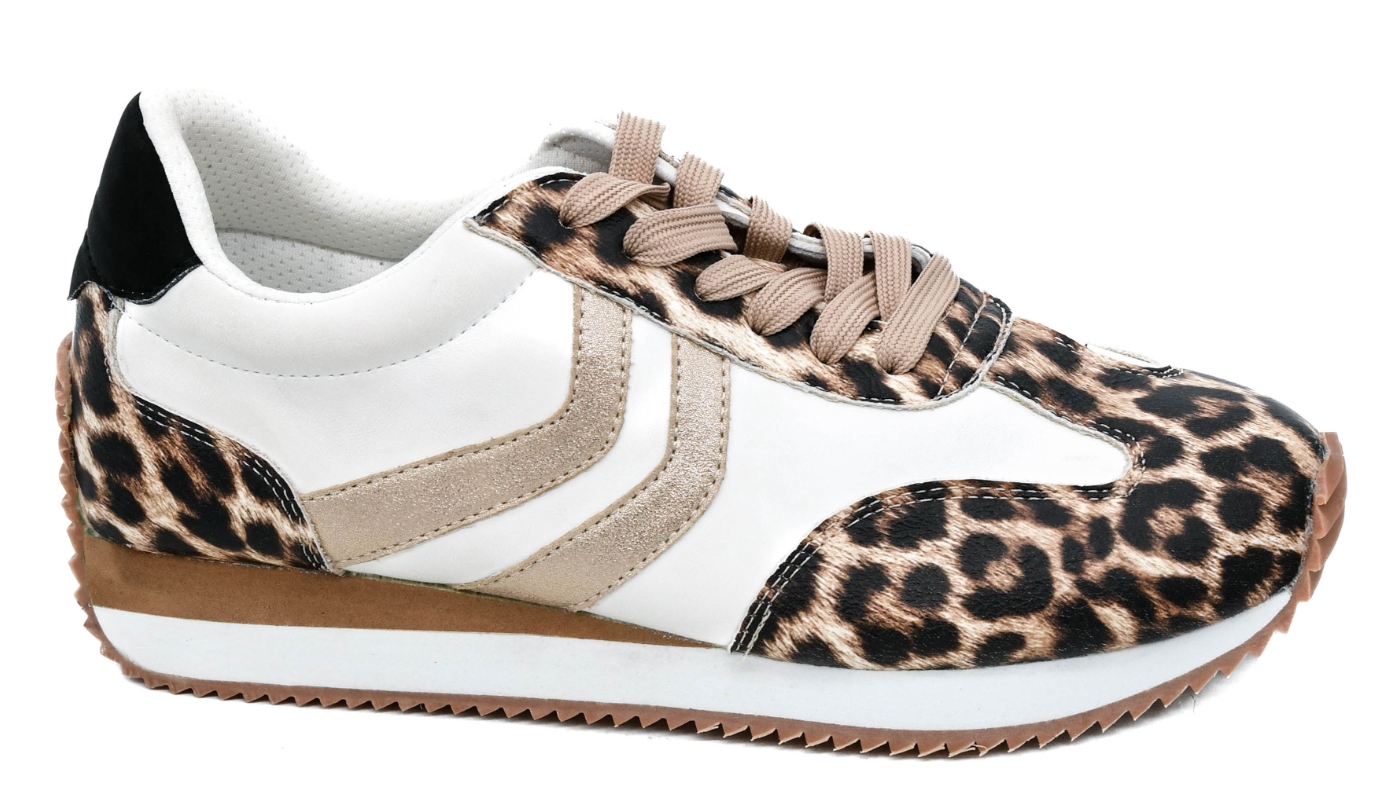Bold print meets everyday ease in this standout sneaker designed to elevate your casual rotation. Featuring eye-catching leopard print with crisp white and neutral accents, this pair delivers retro runner vibes with a fashion-forward twist. Comfortable, lightweight, and endlessly versatile, they’re perfect for pairing with denim, athleisure, or even a casual dress for an effortlessly cool look.