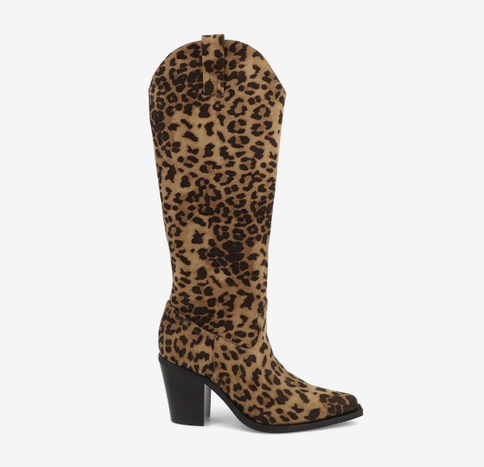 Go tall or go home. Crafted from soft vegan suede, Messini features a 16-inch shaft, 2.7-inch block heel, and pull tabs for easy on-and-off wear—plus a side zipper for the perfect fit. Finished on a bold leopard print to turn heads, all while enjoying all-day comfort with the MIA Signature Footbed™.