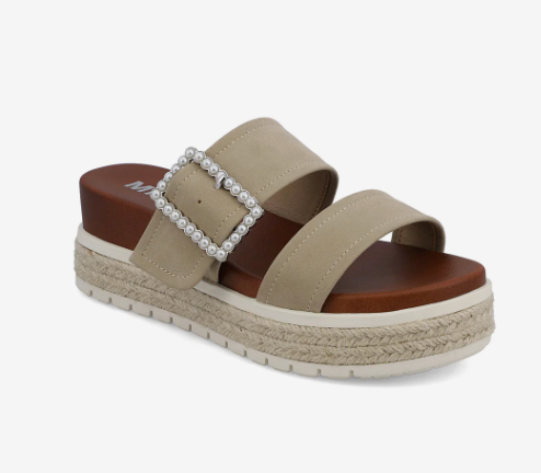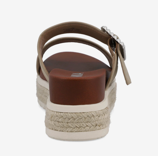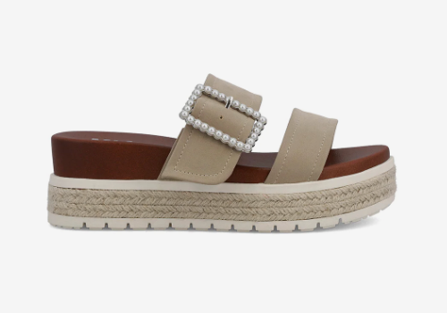 The KIKA sandal is made of vegan leather material and crafted with double straps and a chic pearl buckle. Featuring our MIA signature footbed and finished on a 2.3-inch espadrille platform.
