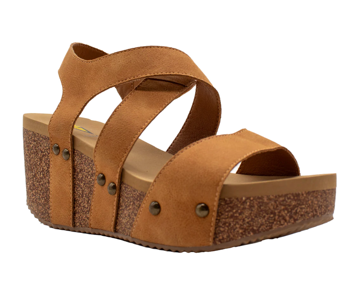 Get Sunkissed! Volatile's Sunkissed sandal has a faux leather upper with metal stud accents and inside zipper. This sandal pairs with anything from jeans to your favorite skirt.