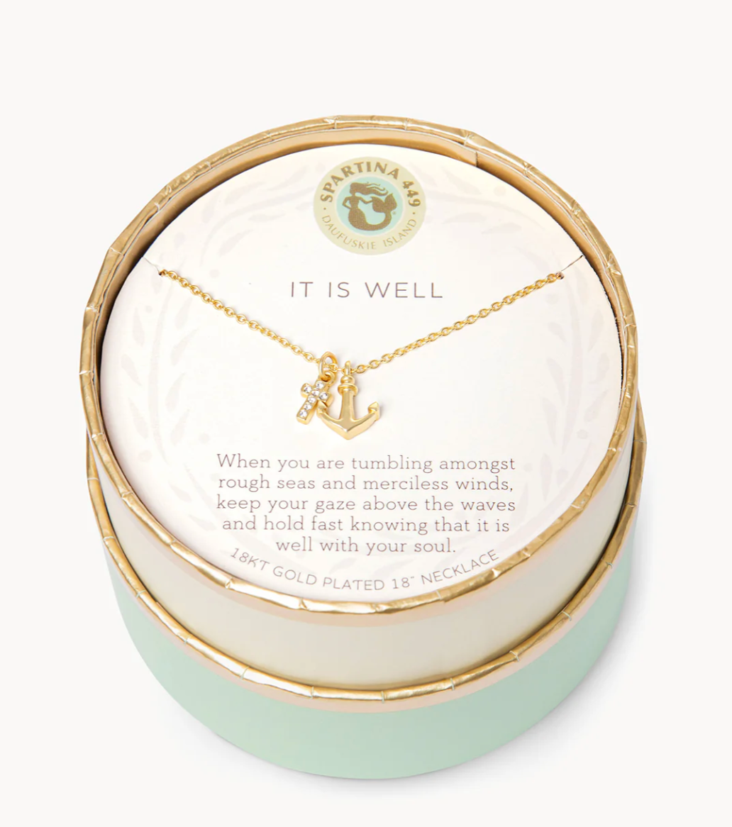 Gold Sea La Vie Necklace It Is Well/Cross Anchor - Spartina