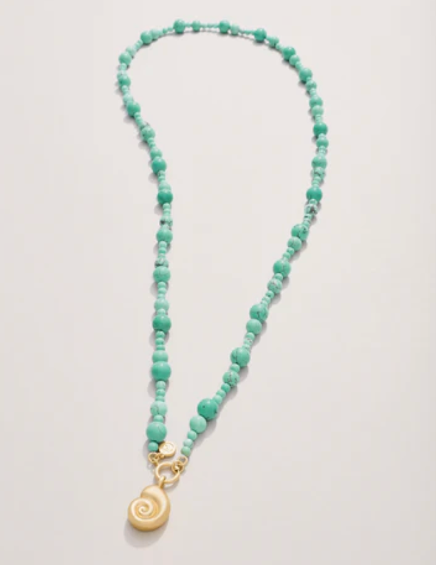 Beaded Charm Necklace 36" Turquoise/Nautilus - Spartina