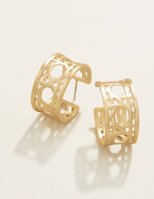 A woven cane pattern adds a little charm to your ear in 18kt matte gold plating with our Cane Midi Hoop Earrings.