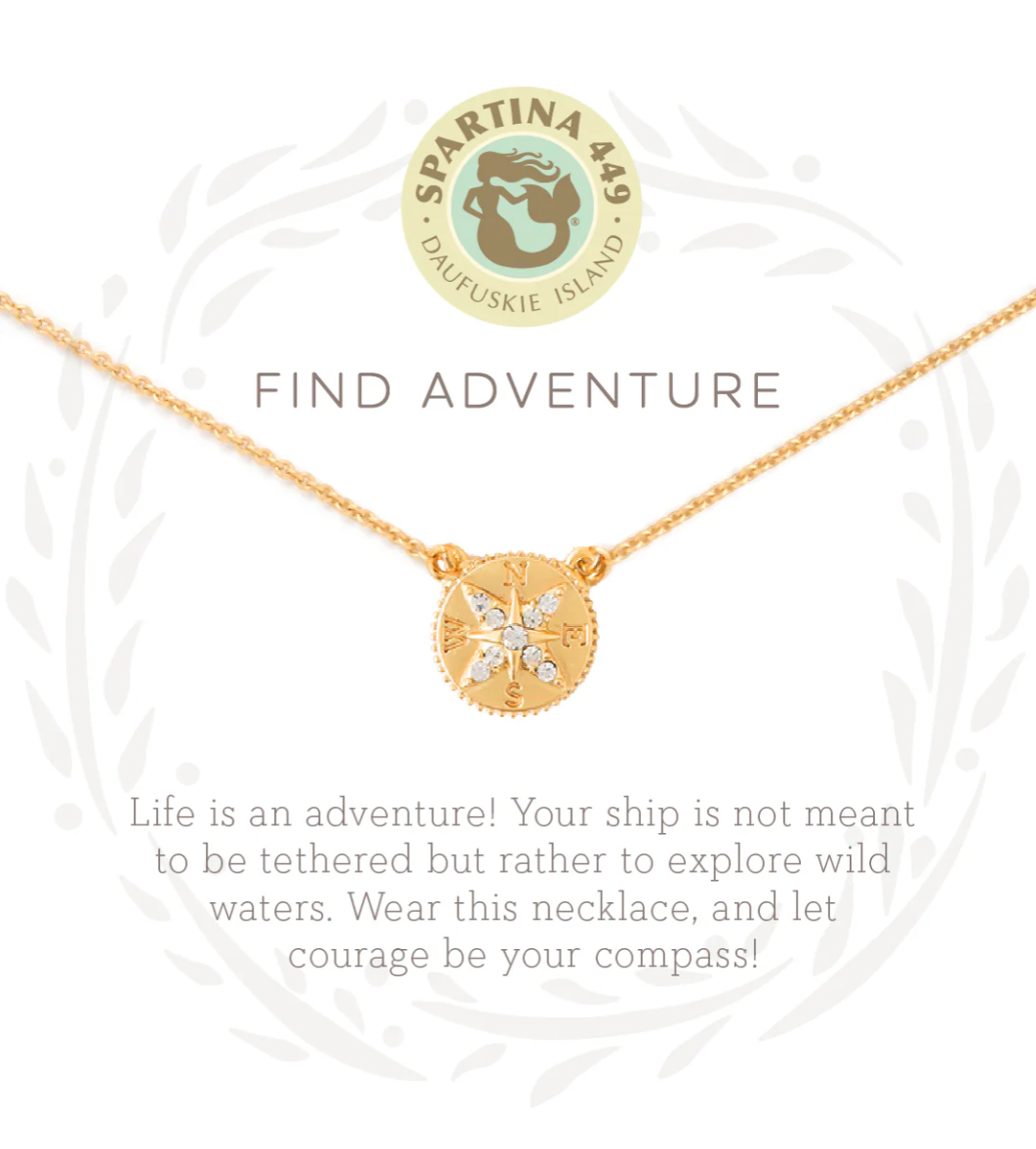 Wear our Adventure Necklace as a reminder to explore the wild waters. Featuring a compass charm, this special piece comes packaged inside a beautiful box with the message: "Life is an adventure! Your ship is not meant to be tethered but rather to explore wild waters. Wear this necklace, and let courage be your compass!"