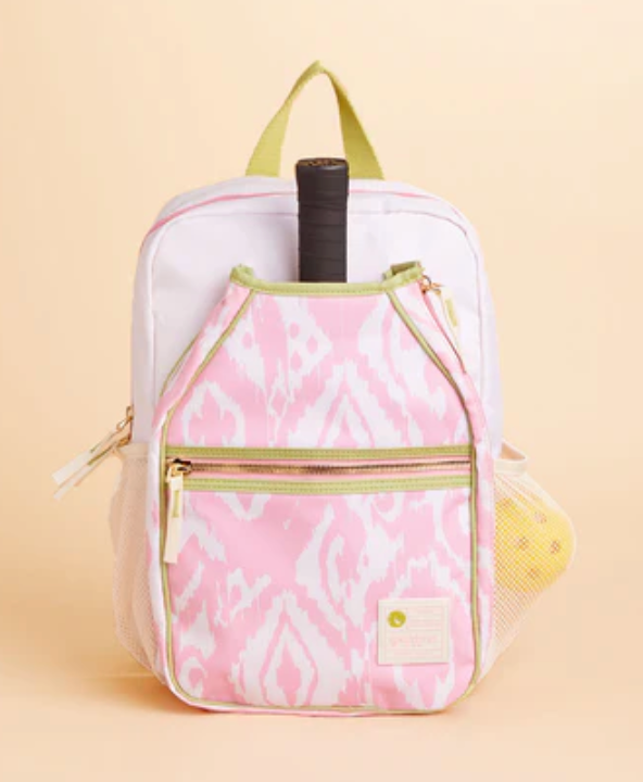 Your next match has never been so stylish with our super-durable, easy-to-wipe-clean, stain-resistant, splash-proof nylon Pickleball Backpack! Designed to hold 1 to 2 of your favorite pickleball paddles in a front zipper pocket. On the inside, a large elastic pocket and large mesh zipper pocket holds everything else, plus your keys— car or locker—on a handy, interior keyring.