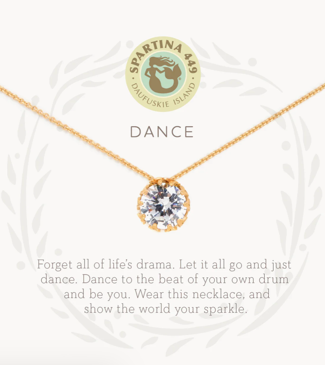 Wear our Dance Necklace as a reminder to listen to your heart. Featuring a gem pendant, this special piece comes packaged inside a beautiful box with the message: "When the waters are rough, wear these earrings and remember that, like an oyster making a pearl from sand, peace comes from within."