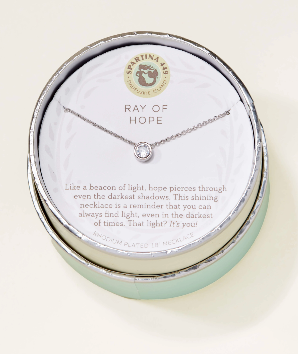Wear our Ray of Hope Necklace as a reminder of the light within yourself. Featuring a gem pendant, this special piece comes packaged inside a beautiful box with the message: "Like a beacon of light, hope pierces through even the darkest shadows. This shining necklace is a reminder that you can always Þnd light even in the darkest of times. That light? It's you!"