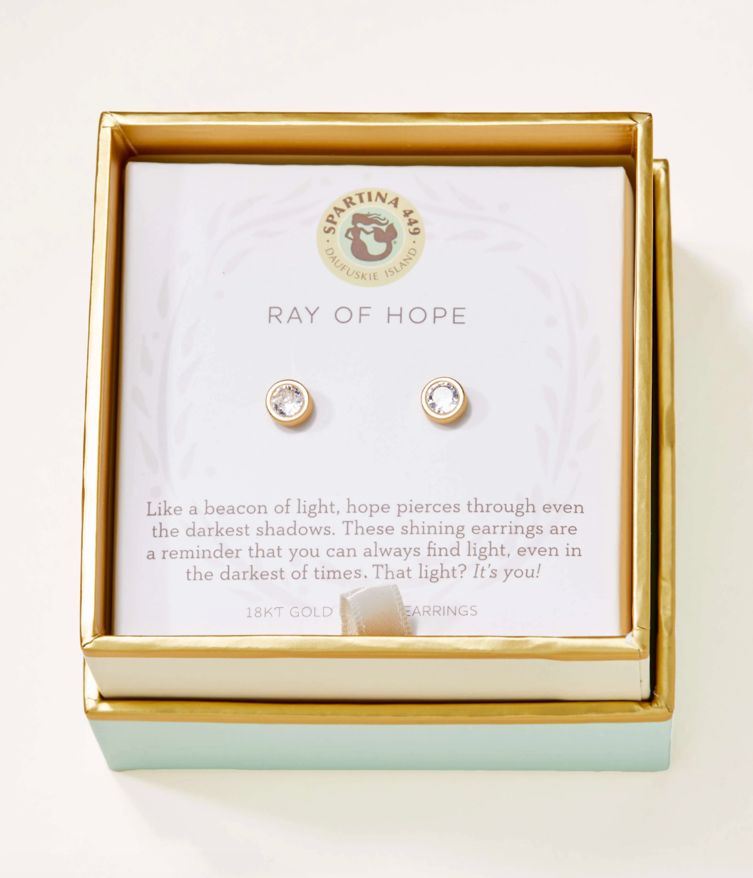 Wear our Ray of Hope Earrings as a reminder of the light within yourself. Featuring gem studs, this special piece comes packaged inside a beautiful box with the message: "Like a beacon of light, hope pierces through even the darkest shadows. This shining necklace is a reminder that you can always find light even in the darkest of times. That light? It’s you!"