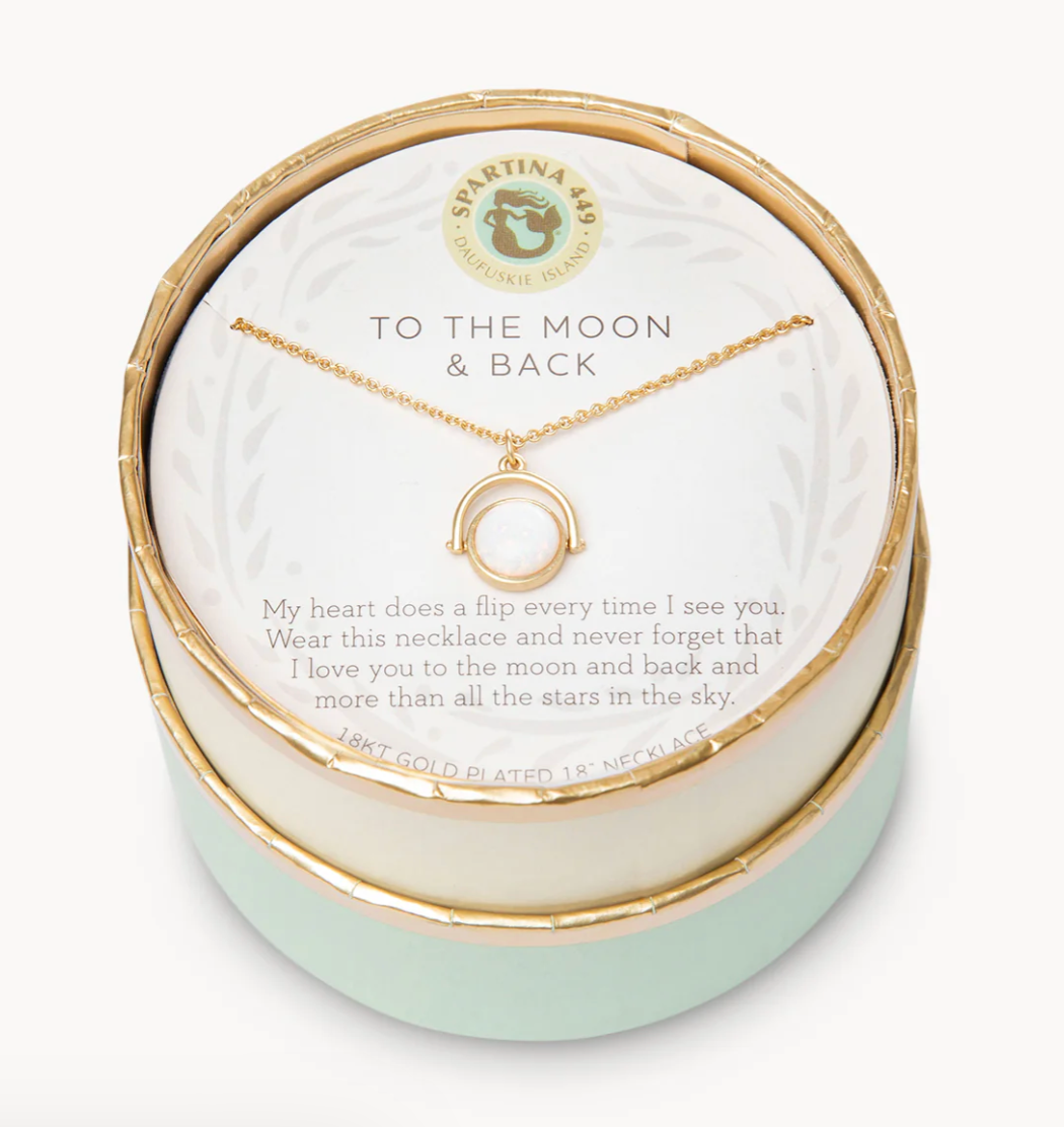 Wear our To The Moon and Back Necklace as a reminder that you are loved. Featuring an moon charm, this special piece comes packaged inside a beautiful box with the message: "My heart does a flip every time I see you. Wear this necklace and never forget that I love you to the moon and back and more than all the stars in the sky."