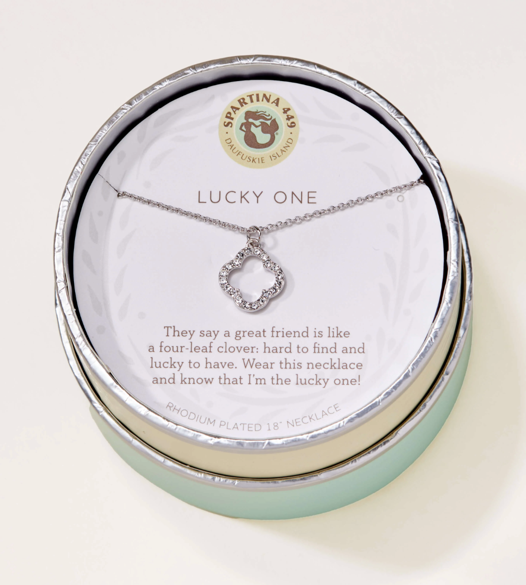 Wear our Lucky One Necklace as a reminder of friendship. Featuring a glass crystal studded quatrefoil pendant, this special piece comes packaged inside a beautiful box with the message: "They say a great friend is like a four-leaf clover: hard to find and lucky to have. Wear this necklace and know that I'm the lucky one!"