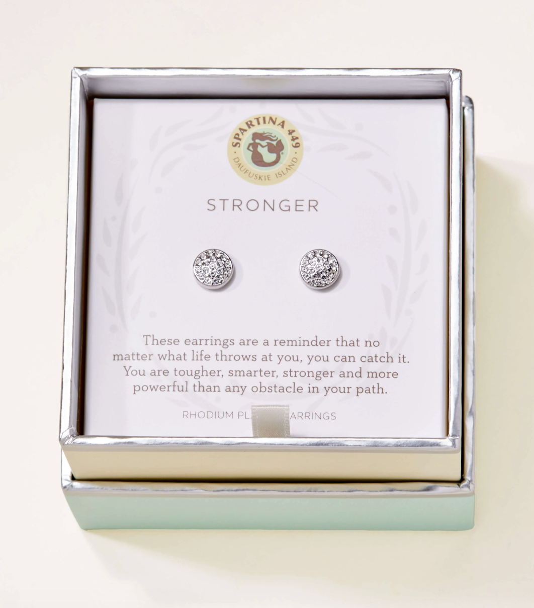Wear our Stronger Earrings as a reminder that you are strong. Featuring glass crystal studded studs, these earrings come packaged inside a beautiful box with the message: "These earrings are a reminder that no matter what life throws at you, you can catch it. You are tougher, smarter, stronger and more powerful than any obstacle in your path."