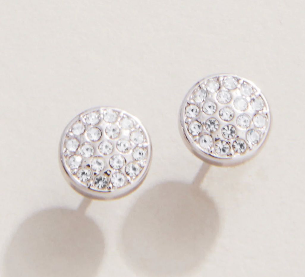 Silver Sea La Vie Stud Stronger/Pave Disk Earrings - Spartina