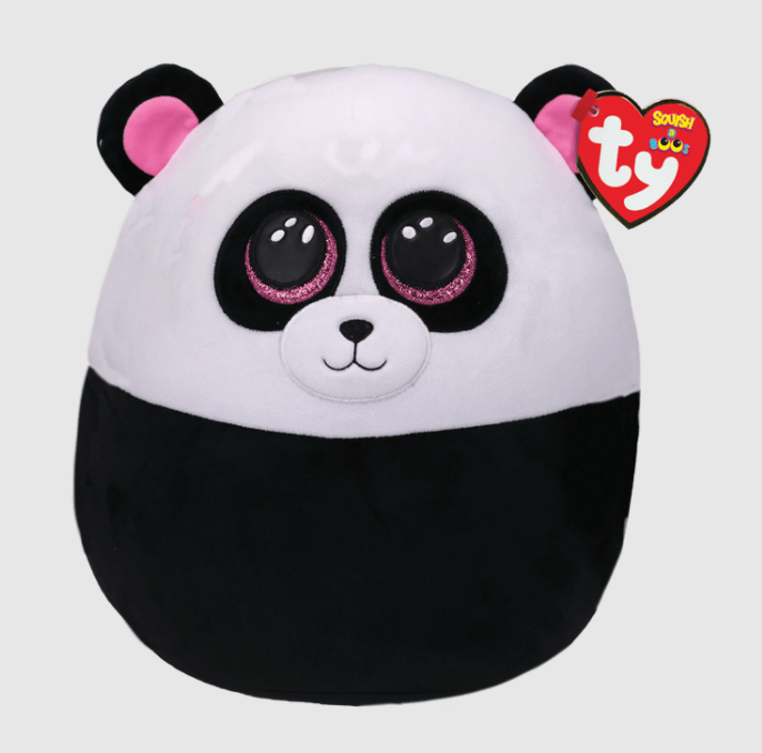Bamboo is now available as a 10" Squish-A-Boo. This cute cuddly friend is so soft and easy to squeeze. With pink sparkle eyes and pink accented ears. Take Bamboo along on road trips or wherever you go. Bamboo will surely steal your heart.