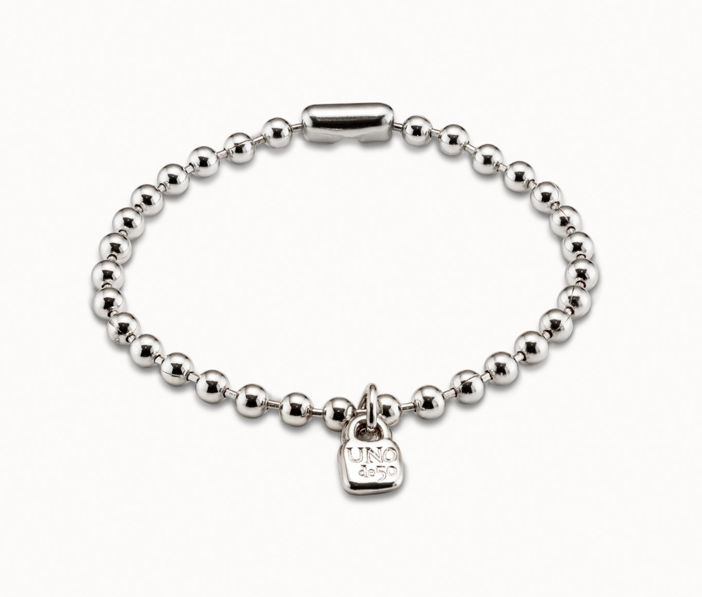 Bracelet of silver balls in silver plated that includes the iconic padlock of UNOde50. You can include the new pendants of UNOde50. A timeless jewel that Will be your lucky charm. A piece made in Spain by UNOde50 and 100% handmade.