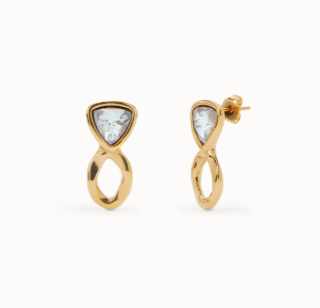 18k gold-plated earrings with triangular multicolored crystals.Ser camaleónica is to adapt to everything with talent, while still being you. Is being versatile, resilient and always ready to reinvent yourself. Let your jewelry become a kaleidoscopic and change color. Nobody gets bored with you. Bring fun and dynamism to life. Like the fresh touch of the faceted crystal pieces that play with dimensions.