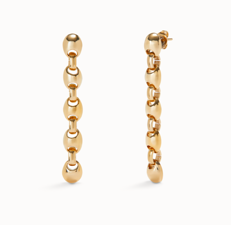 Gold Long Bead Link Earrings - UNO de 50