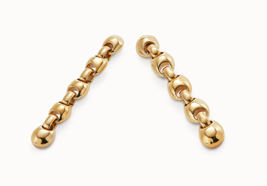 Long 18k gold-plated earrings with bead shaped links.