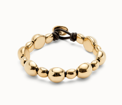 Leather bracelet with round 18k gold-plated beads.