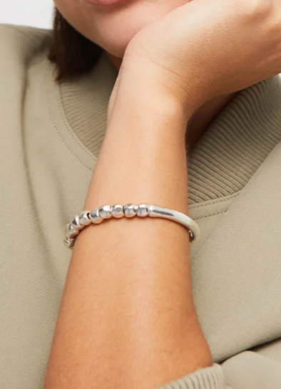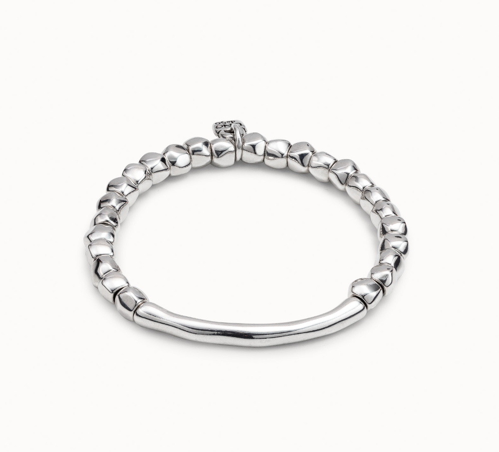 Beaded bracelet with tube shaped silver-plated metal piece. Characteristic of UNOde50, 100% handmade in Spain.