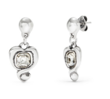 Silver Hanging Heart Earrings W/ Clear Crystal - UNO de 50