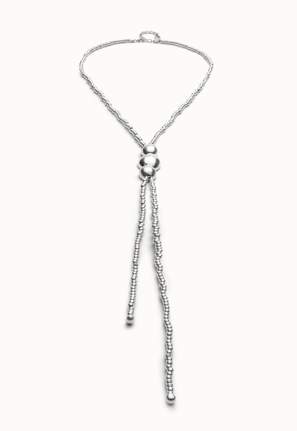 Silver Long Bead Pendant Necklace W/ Large Central Beads - UNO de 50