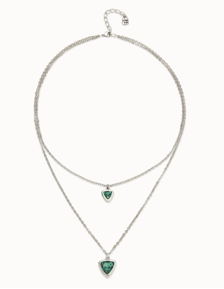 Silver Multi Layer Pendant Link Chain Necklace W/ Green Crystal - UNO de 50