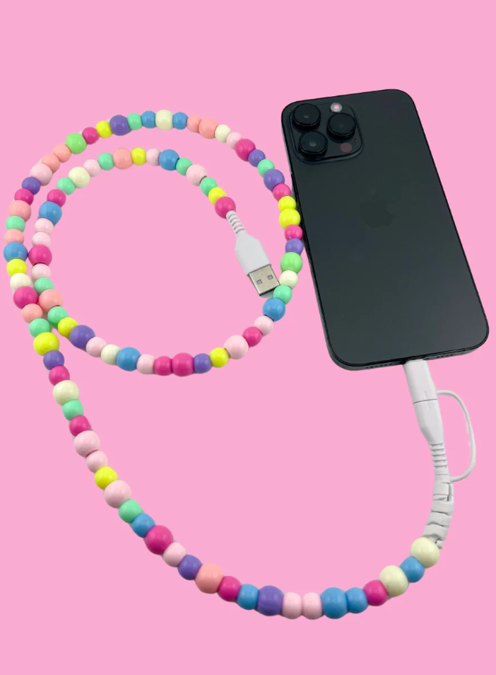 Charge your devices in style with our 2 in 1 Beaded USB Charger! This trendy charger not only provides a convenient way to charge your devices, but also doubles as a stylish accessory with its unique and eye-catching beaded design. Stay connected and stand out with our versatile charger.