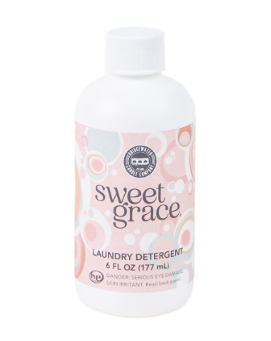 Give your laundry the VIP treatment with our 6 oz Sweet Grace Laundry Detergent. Safe and effective for washable fabrics, this luxurious formula is designed to sanitize while providing long-lasting, beautiful scent to clothing and linens.