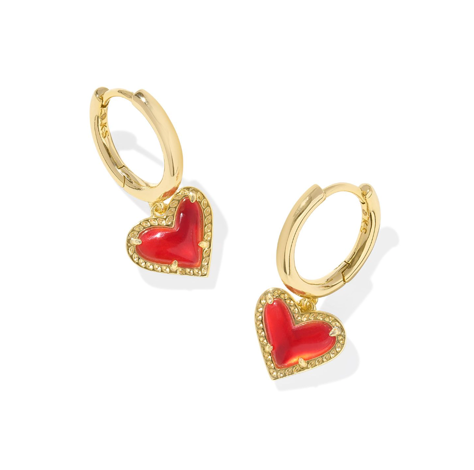 Ari Heart Gold Huggie Earrings in Red Illusion - Kendra Scott