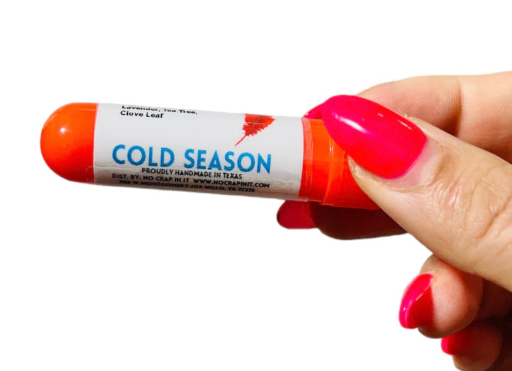 Cold Season-. Ingredients: Grapeseed, peppermint, eucalyptus, grapefruit, lemon, lavender, tea tree, clove leaf ** Not safe for pregnancy