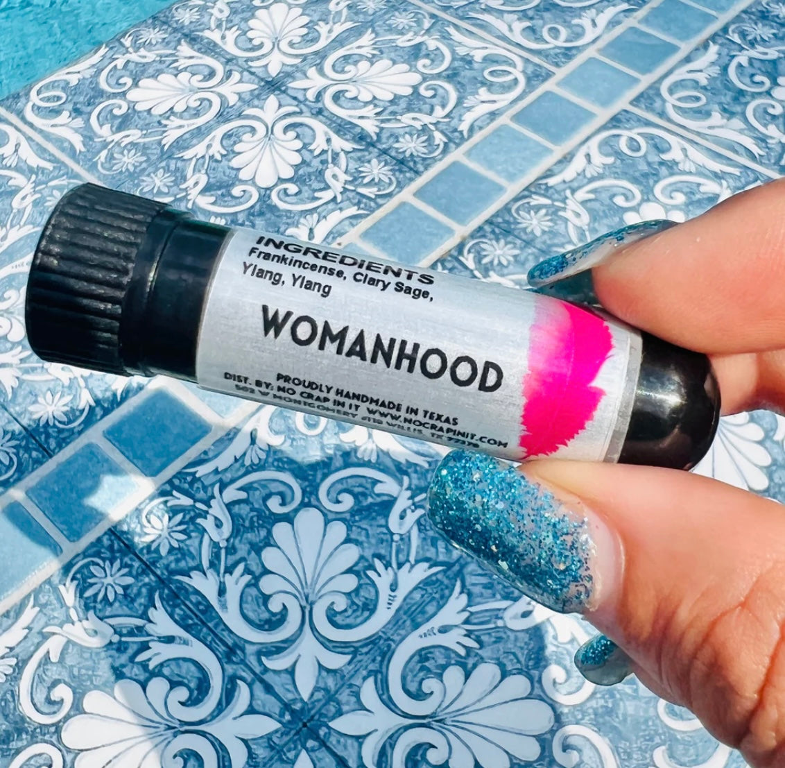 Womanhood - Feminine aroma that cools and soothes. Ingredients: Frankincense, Clary Sage, Ylang Ylang How to Use: Place inhaler to each nostril and inhale deeply. Repeat as necessary. **Not safe to use during pregnancy**