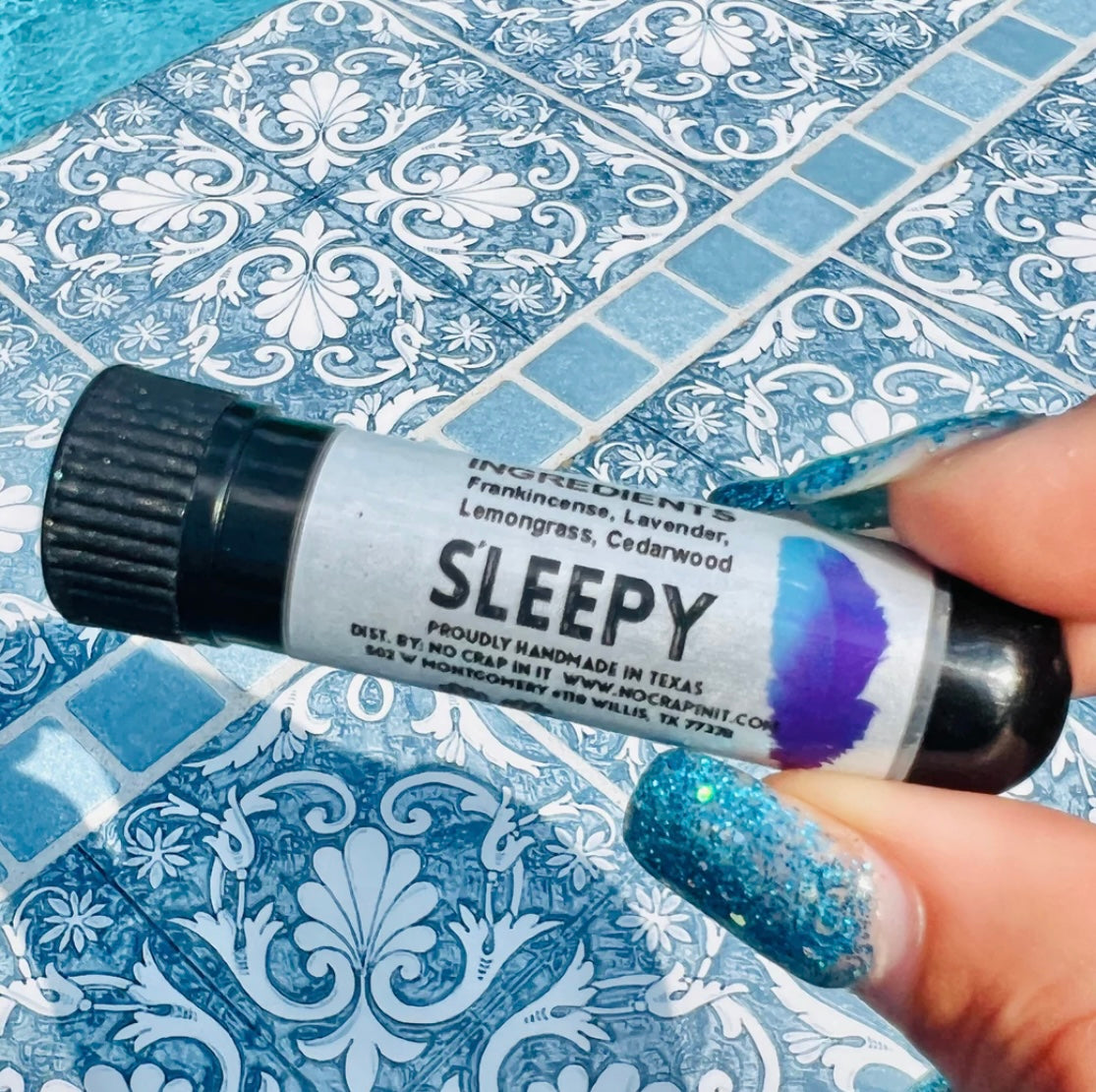 Sleepy - May induce feelings of mental peace, relaxation, and restfulness. Ingredients: Frankincense, Lemongrass, Lavender, Cedarwood How to Use: Place inhaler to each nostril and inhale deeply. Repeat as necessary. **Not safe to use during pregnancy**