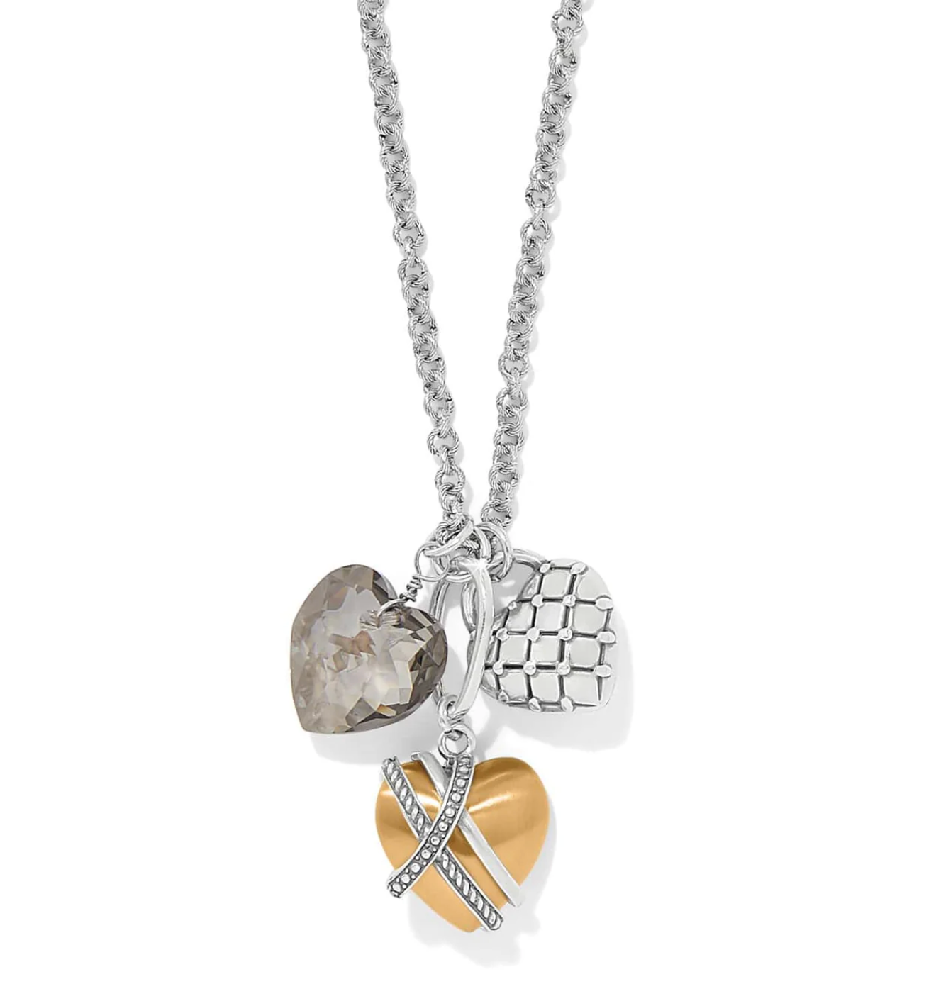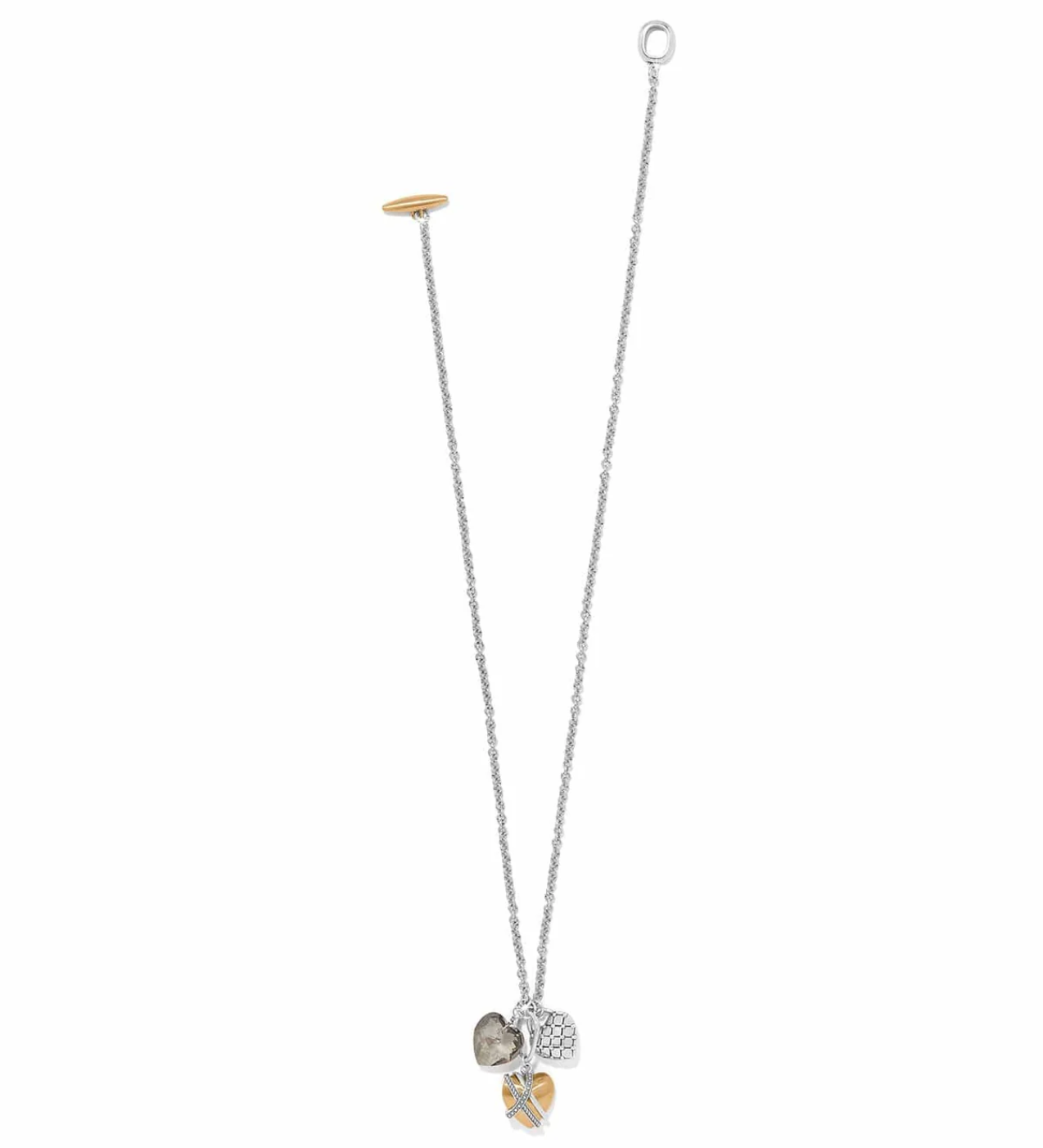 Based on the overwhelming response to the One Heart designs, we added bolder versions of two-tone hearts like the ones dangling from this toggle necklace.