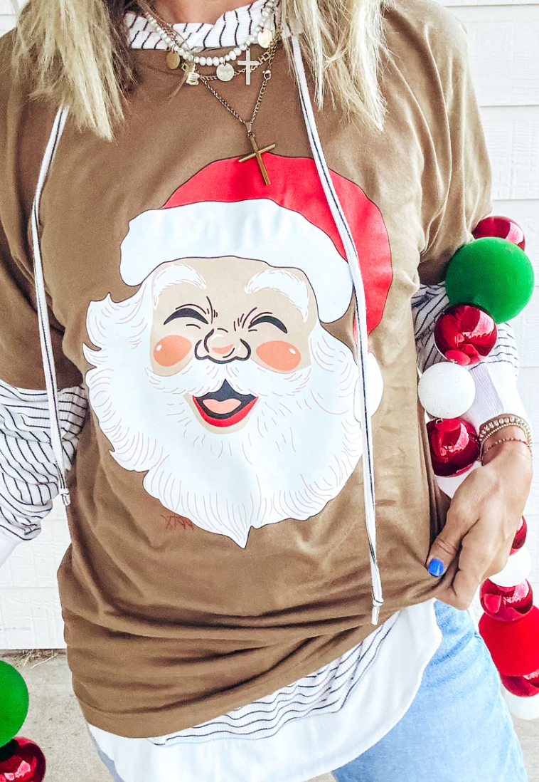 Spread holiday cheer with this cheerful camel-colored tee featuring a grinning Santa ready to say ho ho ho! Perfect for festive gatherings, casual holiday wear, or anyone who loves a jolly dose of Christmas spirit. Soft, comfortable, and guaranteed to bring smiles wherever you go this season.